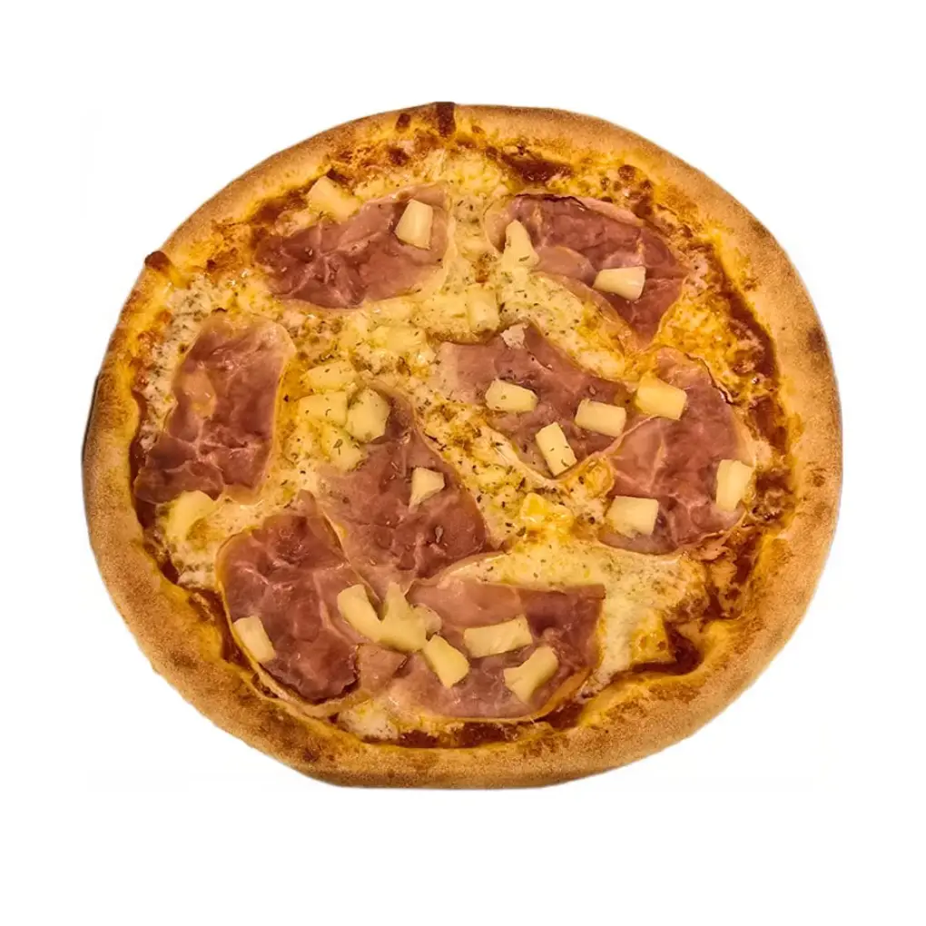 Beleef de smakelijke combinatie van onze Pizza Hawaii 45, een perfecte keuze voor professionals die houden van kwaliteit en smaak. Deze pizza is royaal belegd met sappige ananas en malse ham, wat zorgt voor een heerlijk zoet-zoute ervaring. De krokante bodem en geselecteerde kazen maken elke hap tot een genot. Deze pizza is eenvoudig te bereiden, ideaal voor drukke werkweekenden of als snelle maaltijd bij een bijeenkomst.